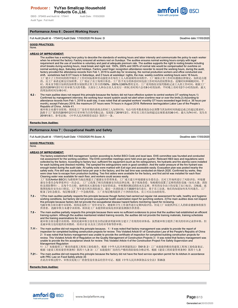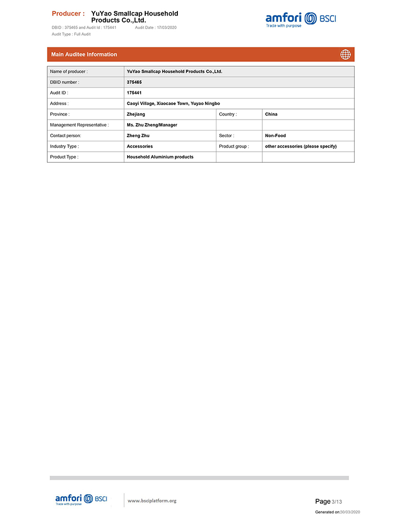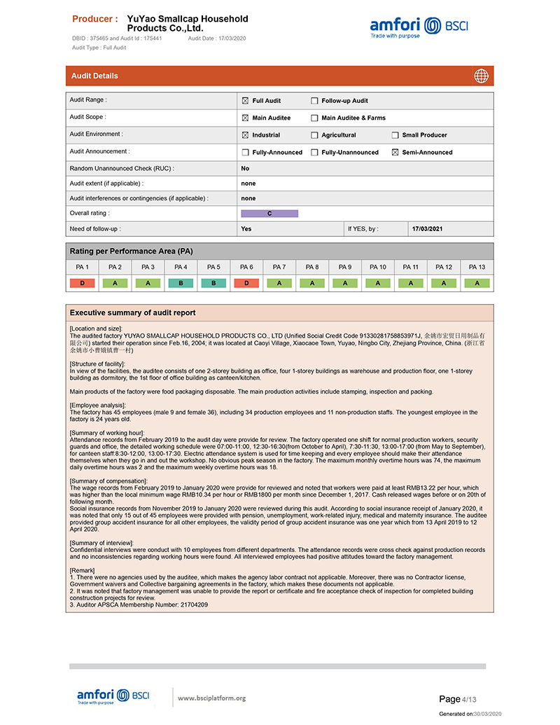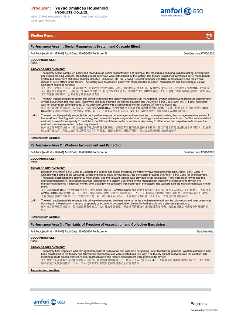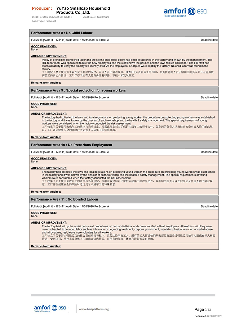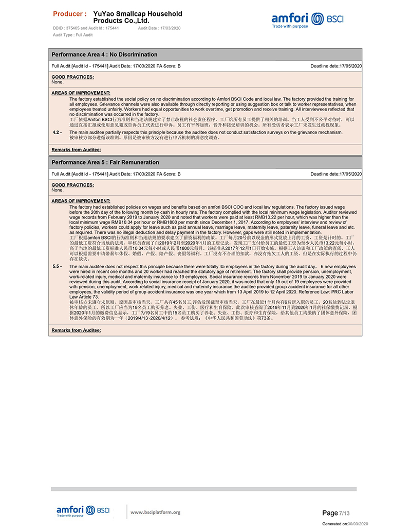 We get the BSCI certificate, it is not easy, we are so happy that our certificate can be approval as per the walmart audit standard.